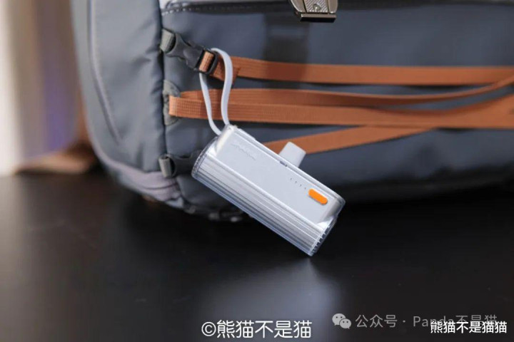 随性Mini2的机身只有100g,非常轻巧,要说熊猫最喜欢的还是这个挂绳设计,既能作为充电线使用,也能作为挂绳使用,出门短途如果背包也能直接挂在包上,颜值百搭。